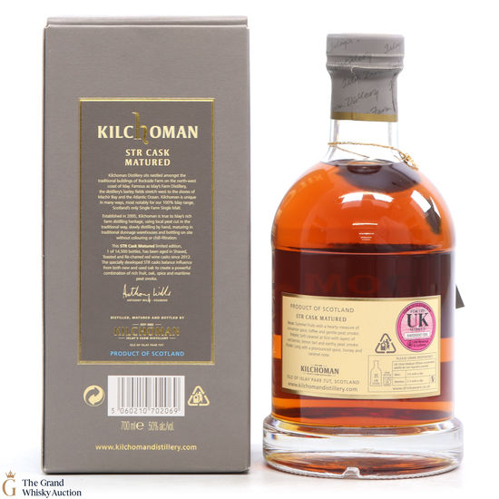 STR - Shaved, Toasted and Re-charred: the treatment that some ex-red wine casks from Kilchoman were given in 2012 before being filled with 50ppm new make spirit. The spirit was left to mature in these STR casks until 2019, making the whisky around 7 years old, before being bottled at 50% ABV.