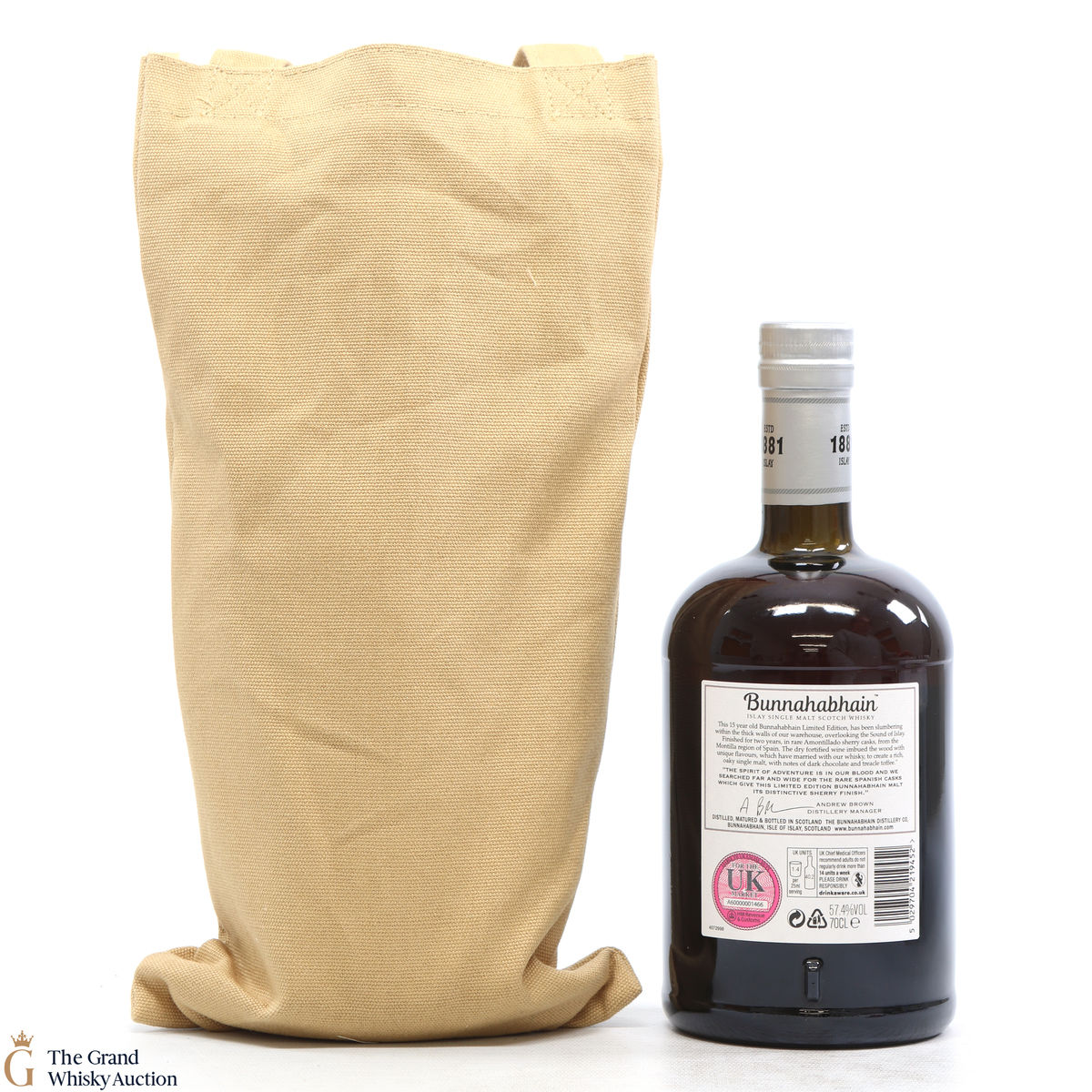 This is a 2019 distillery exclusive from Bunnahabhain Distillery. This Amontillado Cask Finish limited edition started life on the 20th of February 2003 in refill hogsheads before being transferred to Amontillado sherry hogsheads on the 26th of February 2016 where it spent two more years maturing in Bunnahabhain's coastal warehouses.