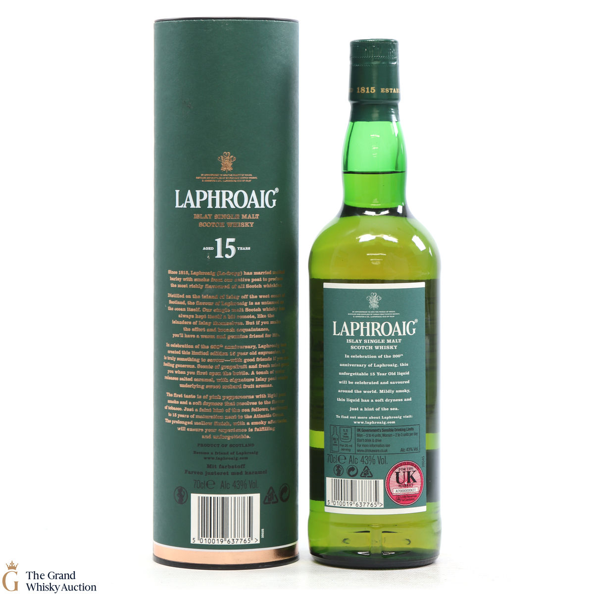 This limited release 15-year-old Laphroaig single malt was bottled to commemorate Laphroigs 200th Anniversary. To mark their bicentenary they brought back their 15-Year-Old for a limited edition release. Laphroaig 15 Year Old was first released in the 1980s, but it was eventually replaced with the Laphroaig 18 Year Old.