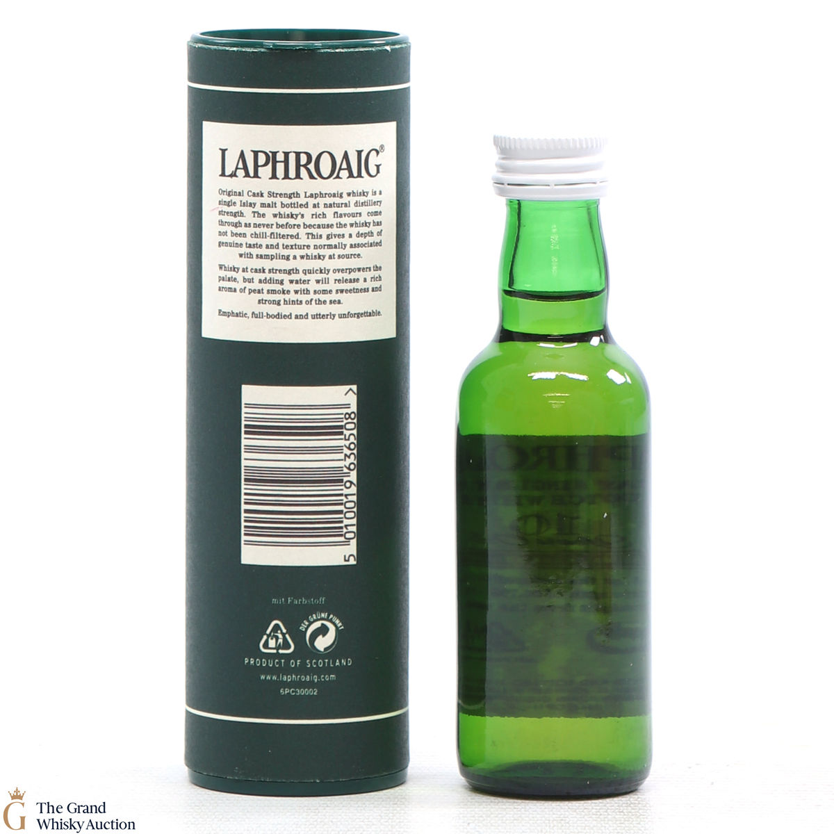 A 5cl of Laphroaig 10-year-old original cask strength, bottled at 55.7% ABV.