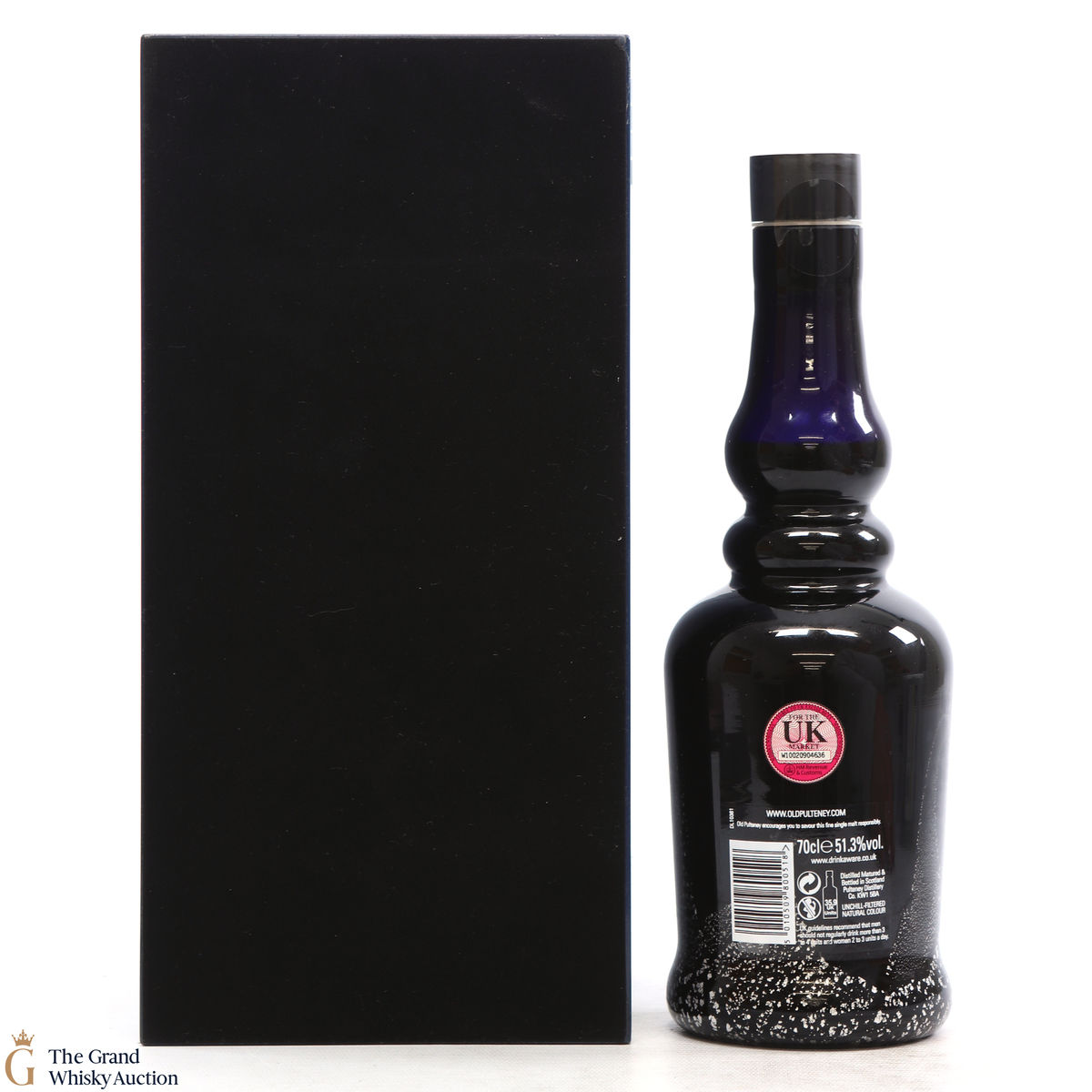 This a very handsome 40-year-old from Old Pulteney indeed. This single malt was drawn from 3 sherry casks and a single bourbon barrel, that were all filled in 1968. The bottle is hand-blown and decorated with silver waves blown across the glass while the metal was molten. It is capped with a polished stone stopper and it comes in a striking presentation case.