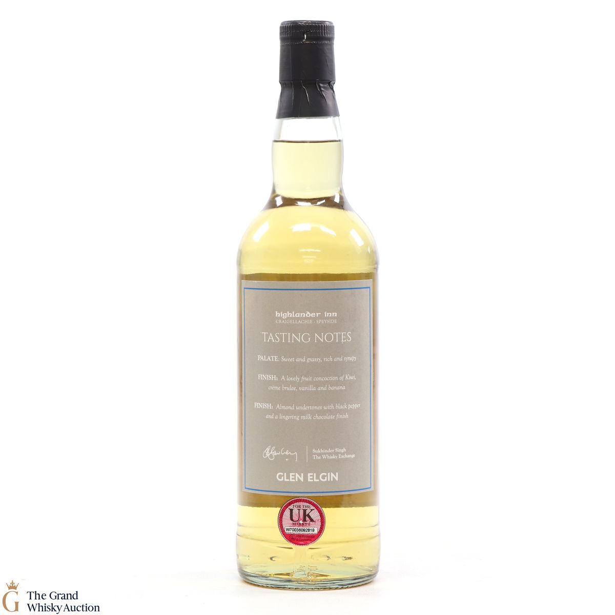 Due to the various ages of bottles and their seals, the condition of liquid is at the buyer's discretion and no claim can be lodged against failure/leakage in transit. Loss and breakage cover is available at 3% of the hammer price as standard. If the lot is not insured, no claim can be lodged against the courier or The Grand Whisky Auction for breakage or loss in transit.