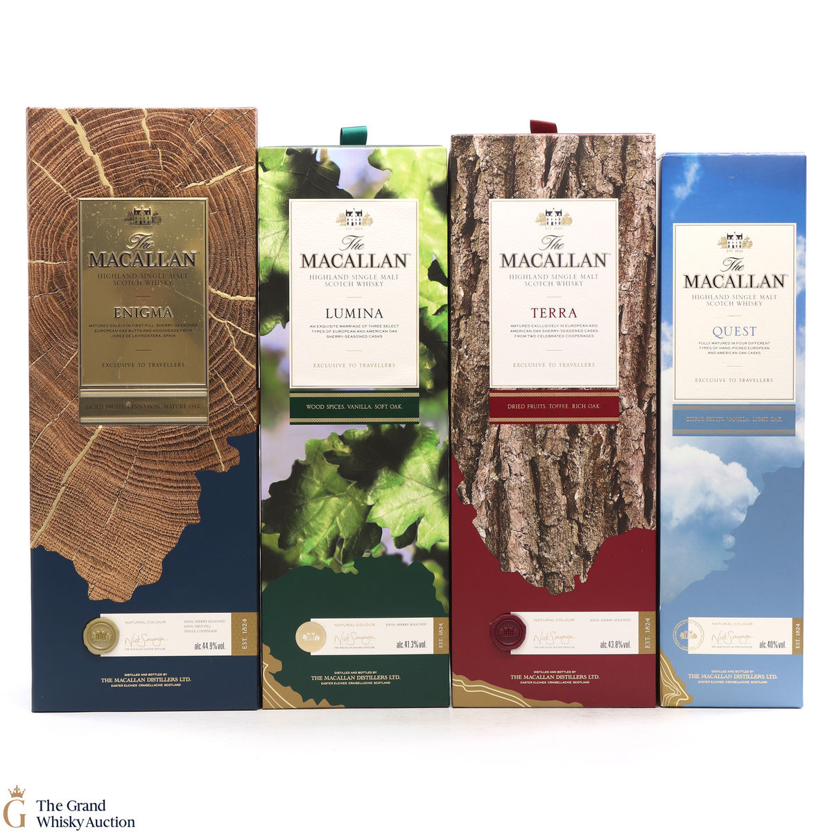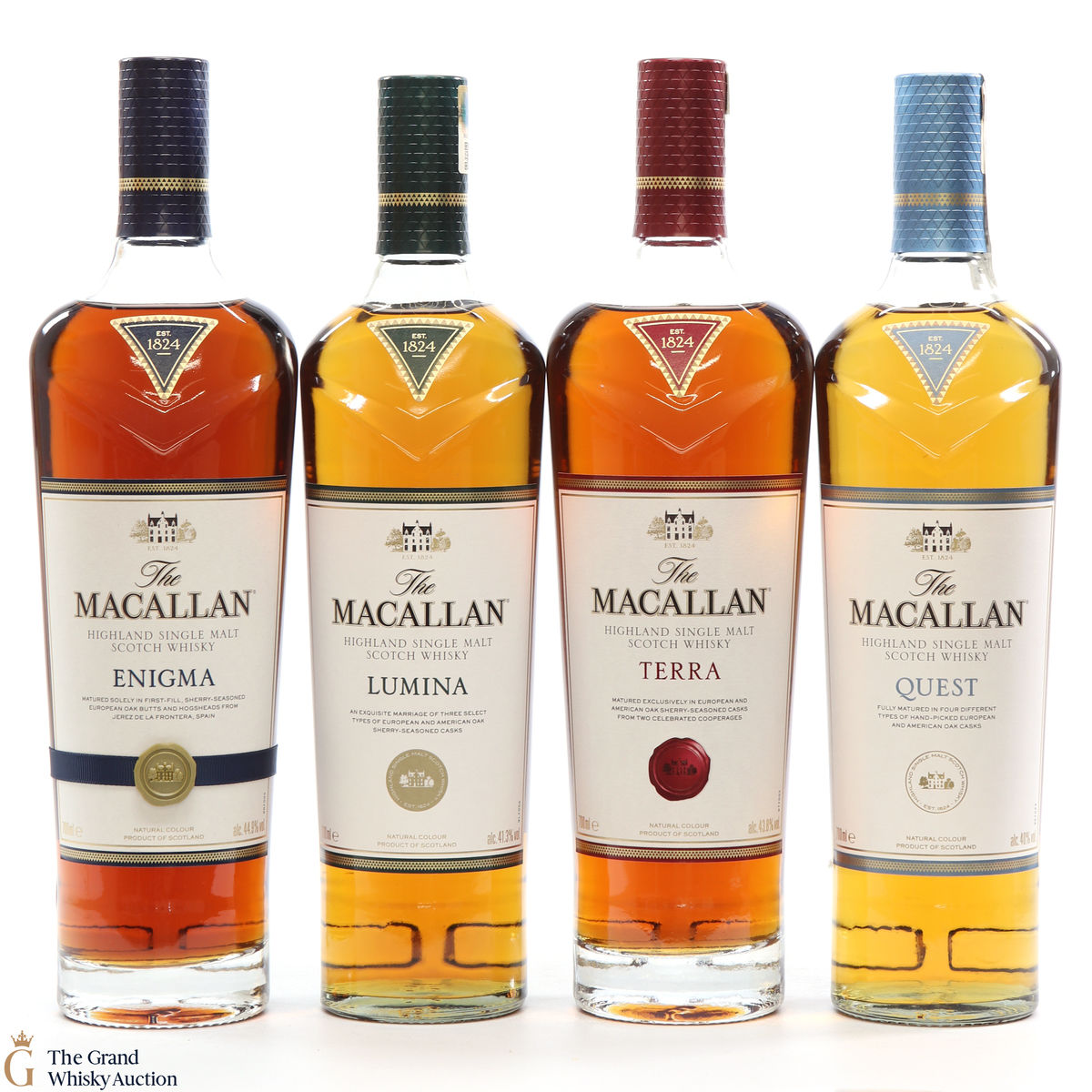 - Enigma: Enigma is at the top end of Macallan's Quest Collection drawn exclusively from European oak Sherry seasons casks from one cooperage in Jerez de la Frontera, Spain. 70cl, 44.9% ABV.