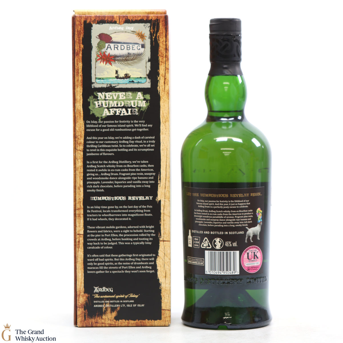 This is the 2019 Ardbeg Drum Limited edition. The Ardbeg Drum is a non-age-statement single malt matured in ex-Bourbon casks and then finished in ex-rum casks from the Americas. It was created to celebrate Ardbeg Day 2019 (June 1) held during the Islay Festival of Music & Malt (Fèis Ìle).
