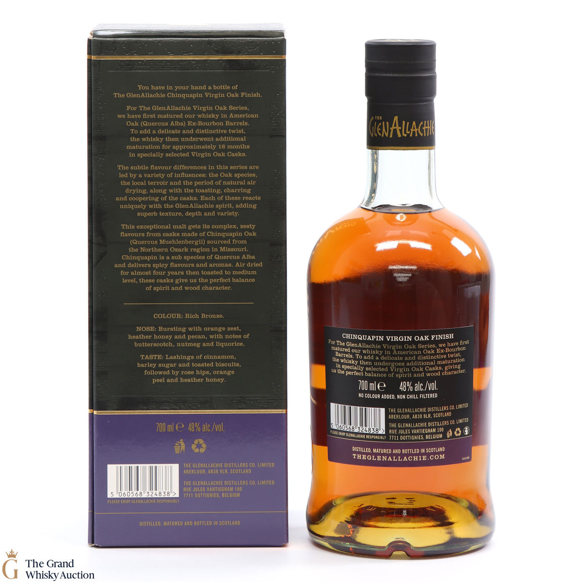 Part of GlenAllachie's Virgin Oak Series, this single malt was matured in Chinquapin Oak which had been sourced from Missouri, USA. The virgin oak was toasted to a medium level, giving the malt a complex and zesty flavour.
