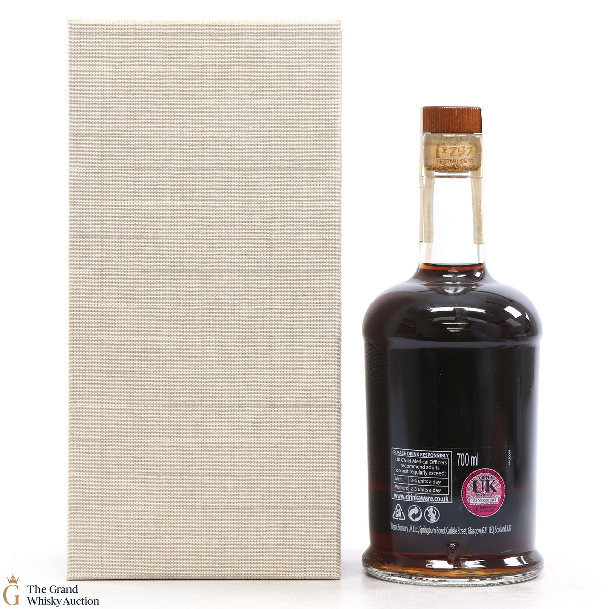 Due to the various ages of bottles and their seals, the condition of liquid is at the buyer's discretion and no claim can be lodged against failure/leakage in transit. Loss and breakage cover is available at 3% of the hammer price as standard. If the lot is not insured, no claim can be lodged against the courier or The Grand Whisky Auction for breakage or loss in transit.