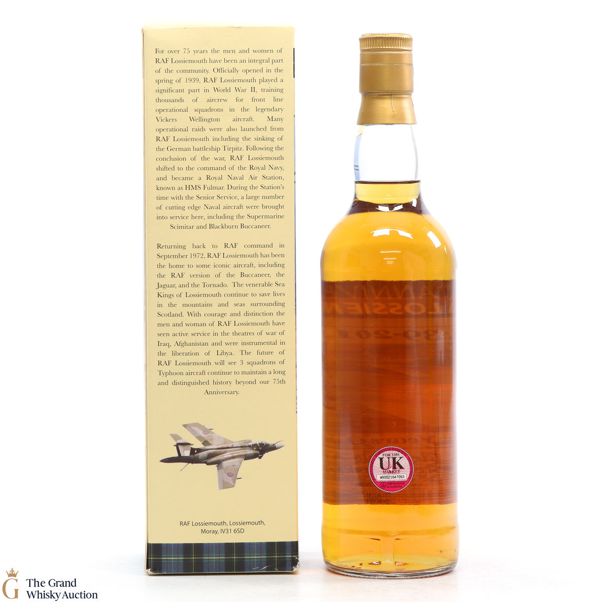 A 21-Year-Old mystery single malt from a Speyside distillery, bottled for the 75th anniversary of RAF Lossiemouth in 2014. A limited-edition bottling, this is one of just 300 bottles.
