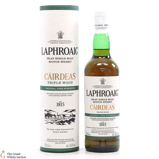 Cairdeas, Gaelic for 'friendship', is an annual bottle release by Laphroaig for their Friends of Laphroaig members. This Càirdeas Triple Wood Cask Strength was released for Fèis Ìle 2019. It has had a special triple maturation; first matured in ex-bourbon barrels, then in quarter casks and finally in European oak casks which previously held oloroso sherry.