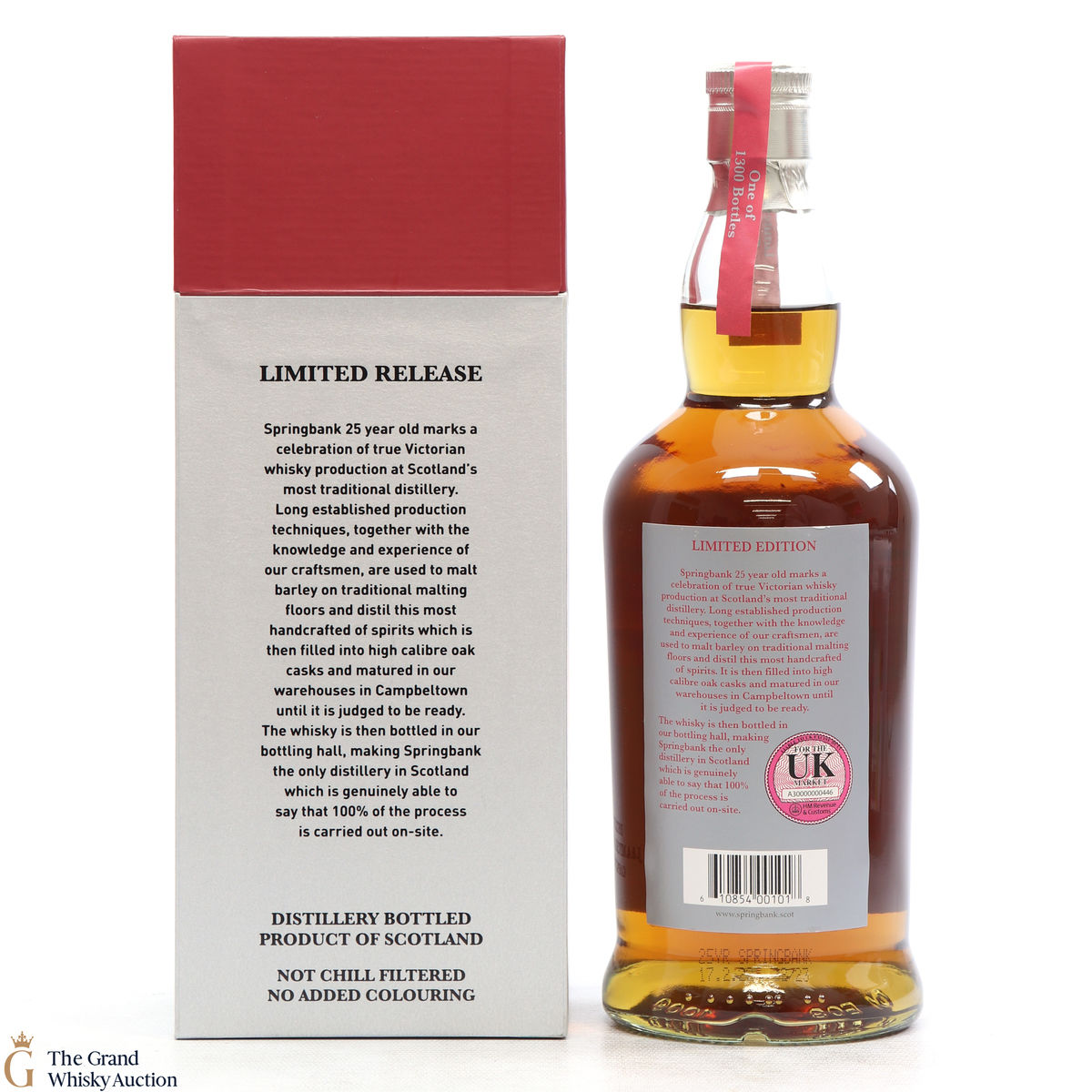 A very limited release from the Campbeltown distillery Springbank. Bottled in 2022 this 25 Year Old was bottled at 46% ABV and is one of only 1,300 bottles. This bottling has been made up from a combination of casks; 40% bourbon casks, 60% sherry casks.