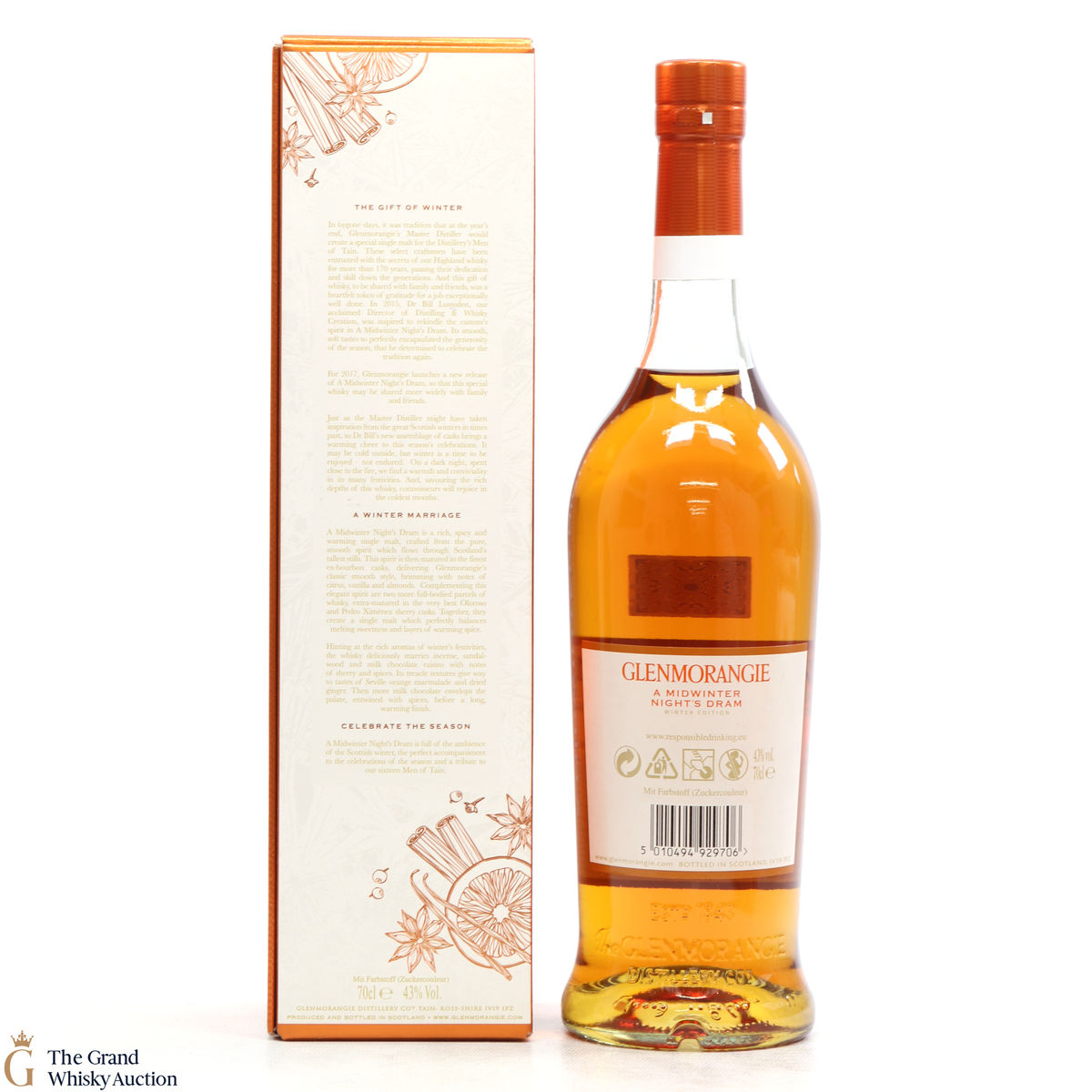 Inspired by a bygone tradition, the 2017 release of Glenmorangie A Midwinter Night’s Dram encapsulates the generosity of winter. At the year’s end, Glenmorangie’s Master Distiller would create a special single malt for our select craftsmen, the Men of Tain, to thank them for a job exceptionally well done. In 2015, we rekindled this custom’s spirit in the first release of Glenmorangie A Midwinter Night’s Dram, a marriage of superior casks which once held bourbon and Oloroso sherry. For 2017, this tradition was celebrated again, complementing these whiskies with a parcel finished in ex-Pedro Ximénez sherry casks, to create a richer, deeper, spicier single malt whisky.