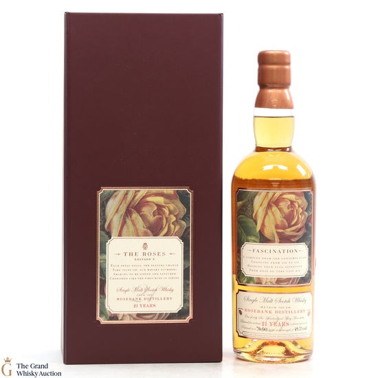 Elixir Distillers Rosebank Roses series fifth release, Fascination. Aged in a combination of 1990 and 1991 ex-madeira and American oak barrels for at least 21 years. Bottled at 49.5% ABV. This is one of only 633 bottles released to celebrate Valentine’s Day 2021.