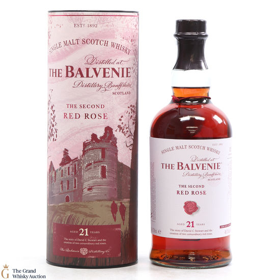 Inspired by the history of Balvenie Castle, this single malt was matured for a total of 21 years, being finished in Australian Shiraz Casks. The story of David C Stewart has created two extraordinary red roses, this is the second red rose and story number 5 in the series. Bottled at 48.1% ABV.
