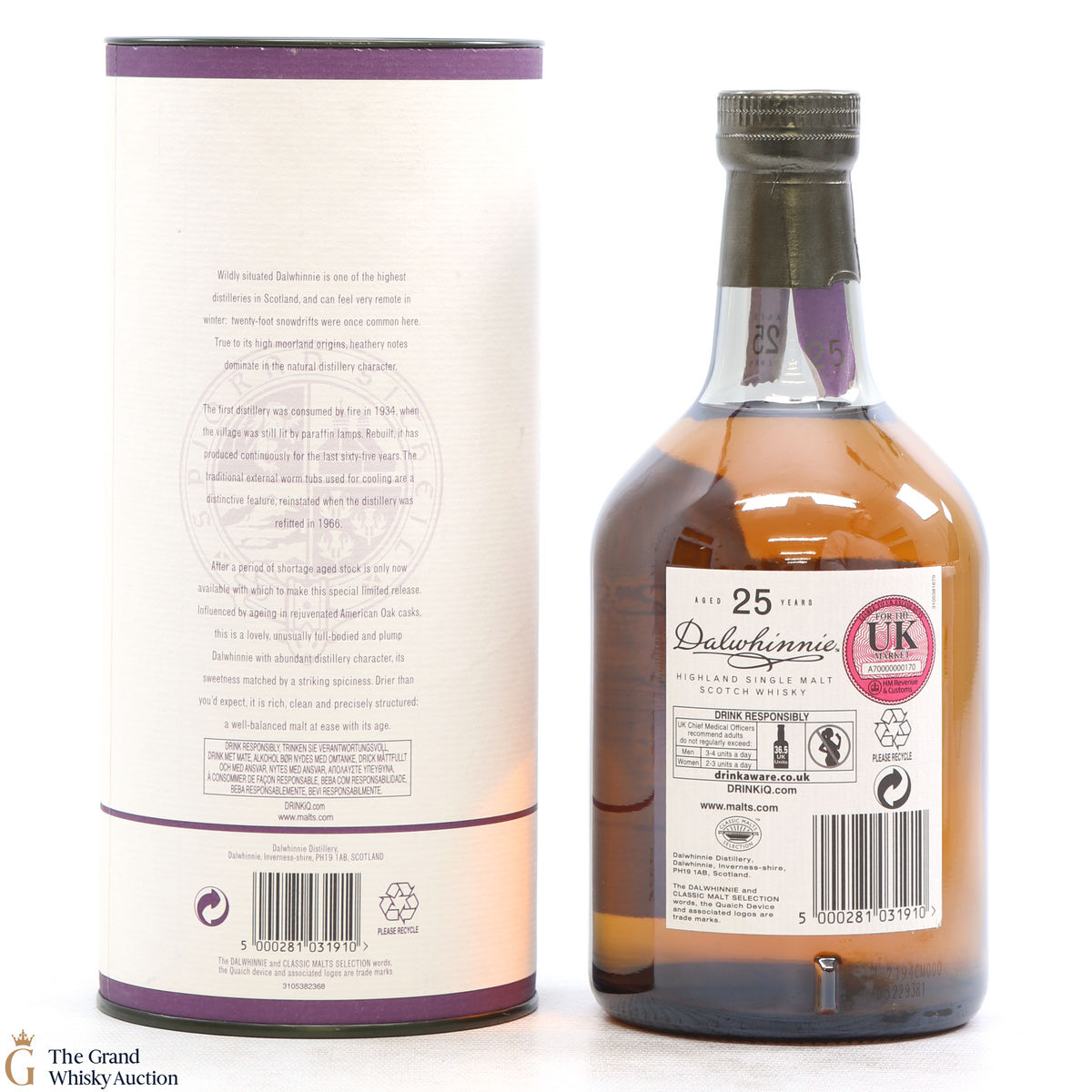 There were 5358 bottles of this 25 year old single malt from Dalwhinnie produced. Distilled in 1987 it was eventually bottled in 2012. Matured in American Oak casks, Dalwhinnie is one of the highest distilleries in Scotland. It sits at 1164 ft above sea level. Dalwhinnie is used as the signature malt in Buchanan's blend.