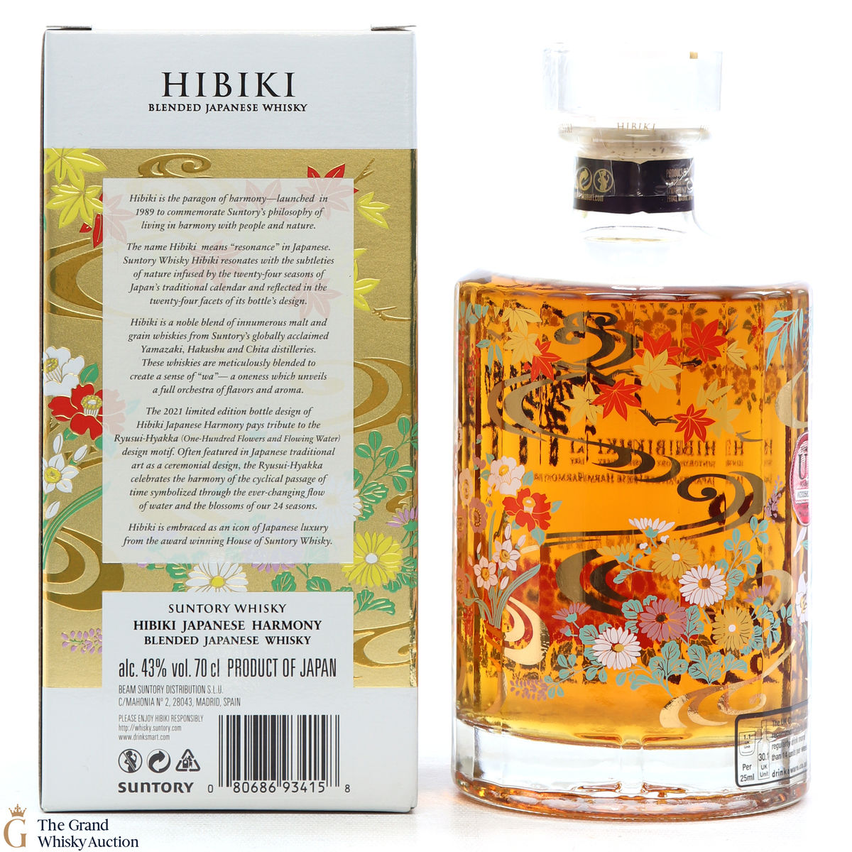 This is a limited edition, specially designed bottle with painted flowers and flowing ribbons of water. The 2021 special edition pays homage to the Ryisui-Hyakka (One Hundred Flowers and Flowing Water) and celebrates different seasonal flowers which help characterise the Japanese seasons. 5 types of casks were used and in typical Hibiki fashion, the bottle always has 24 facets which represent 24 seasons in the Japanese lunar calendar.