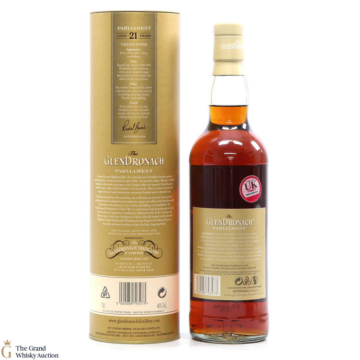 Released in 2011 by Glendronach Distillery, this bottling was named after the Parliament of rooks that lives in the trees near the distillery. The single malt has been aged for 21 years in a mix of sherry casks (Oloroso and sweet Pedro Ximenez dessert sherry).