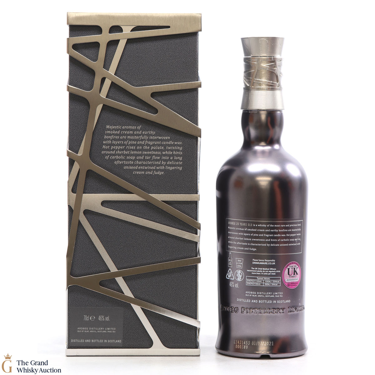 This guaranteed 25 Year old by Ardbeg has been produced from incredibly rare casks which were filled during some of the distillery's darkest day's. Known for its peated whiskies this is one of Ardbegs oldest aged whisky to join the core range. This expression proves that age cannot tame Ardbeg’s smoky power, but also that it can yield some of the most complex and majestic flavours ever from Ardbeg Distillery.