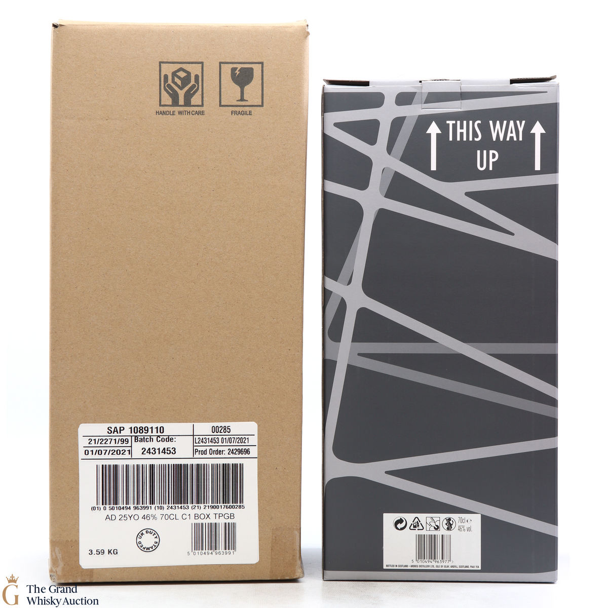 Due to the various ages of bottles and their seals, the condition of liquid is at the buyer's discretion and no claim can be lodged against failure/leakage in transit. Loss and breakage cover is available at 3% of the hammer price as standard. If the lot is not insured, no claim can be lodged against the courier or The Grand Whisky Auction for breakage or loss in transit.