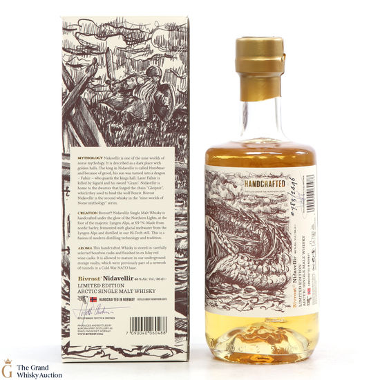 This is a limited edition bottle created in Arctic Norway was 'handcrafted under the Northern Lights'. Matured in bourbon casks and given a finishing period of 5-6 months in nicely seasoned, well-travelled casks. Bivrost Nidavellir is the second Whisky in the “nine worlds of Norse mythology” series. This is a 50cl bottling.