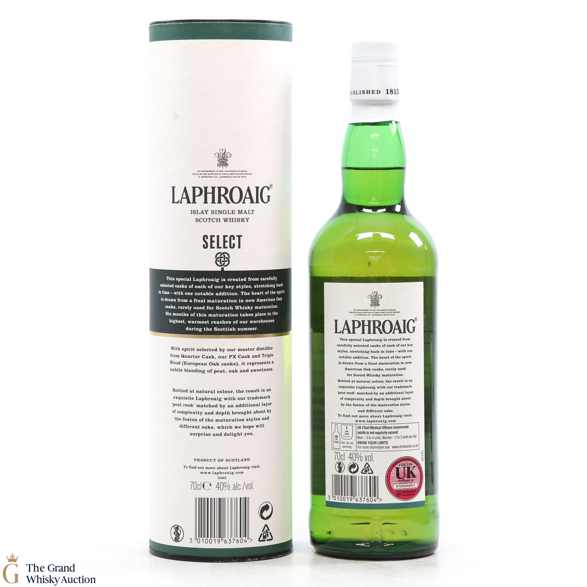 Laphroaig Select has been created using a combination of whisky from a number of different types of cask, including Oloroso Sherry butts, white American oak, Pedro Ximenez seasoned hogsheads, quarter casks and first-fill bourbon casks.