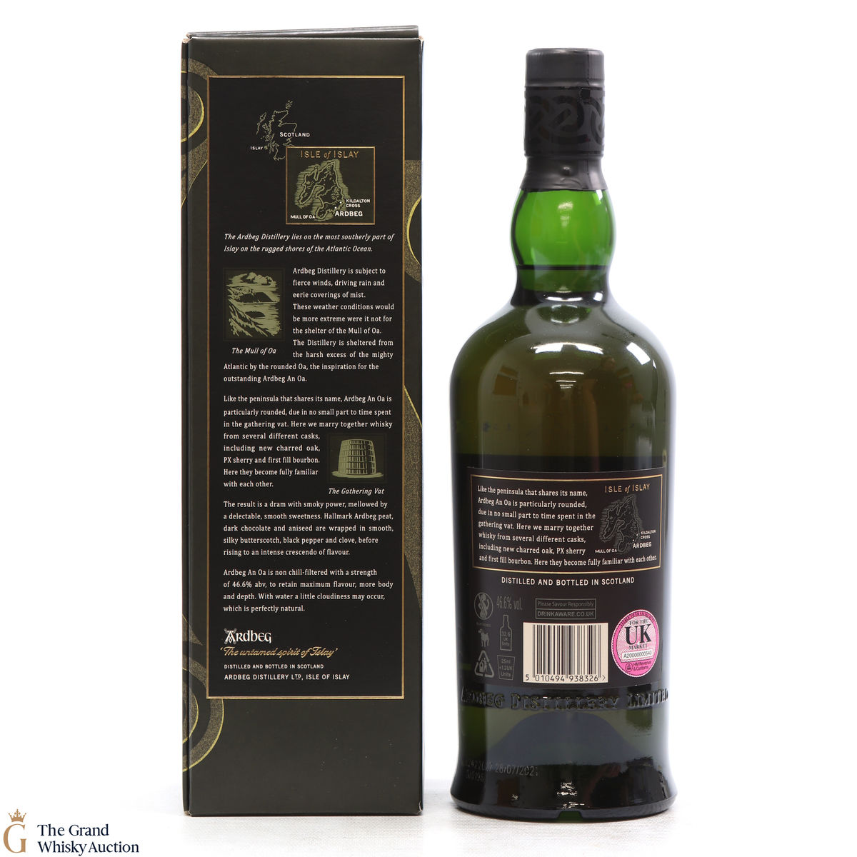 'An Oa' was the first addition to Ardbeg's core range for a decade when introduced in 2017. It is made up from a combination of spirit aged in Pedro-Ximenez sherry casks and bourbon barrels. Married in a French-oak marrying vat, this is rounded and smoky with notes of toffee, aniseed, date and banana.
