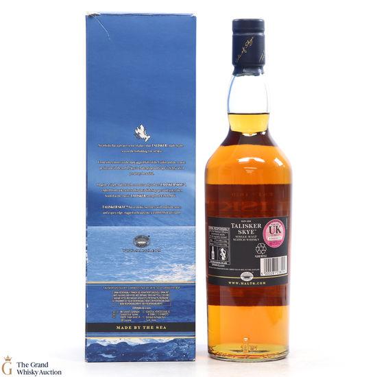 Talisker single malt scotch whisky is from the oldest distillery on the Isle of Skye. Talisker Skye was introduced in early 2015, named after the beautiful island on which the distillery resides. It has been matured in a combination of refill and toasted American oak casks, with a slightly higher proportion of toasted casks.