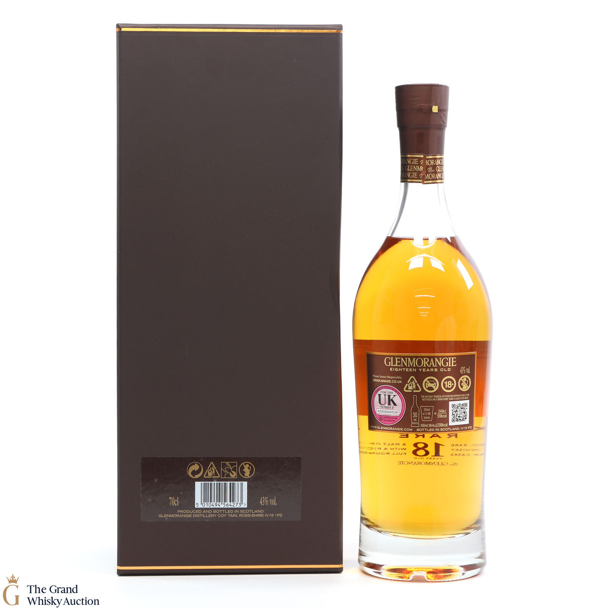 This bottle is an 18-year-old Extremely Rare, Highland single malt produced by Glenmorangie. It has been perfected by the sixteen men of Tain who have specially aged this bottle for 18 years in superior oak casks.