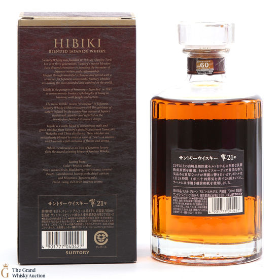 Hibiki 21 Year Old is a very popular blended whisky from Suntory. It is made up of a blend of specially selected mature malt and grain whiskies aged over 21 years. The key Yamazaki sherry casked malt is vatted with other carefully chosen mellow unblended grain whiskies over 21 years old.