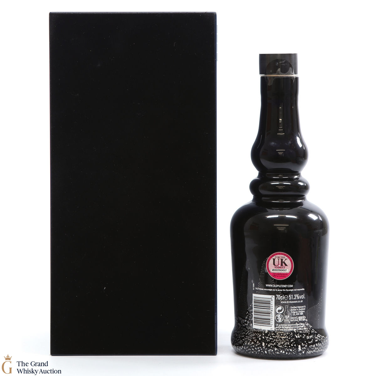 This a very handsome 40-year-old from Old Pulteney indeed. This single malt was drawn from 3 sherry casks and a single bourbon barrel, that were all filled in 1968. The bottle is hand-blown and decorated with silver waves blown across the glass while the metal was molten. It is capped with a polished stone stopper and it comes in a striking presentation case.
