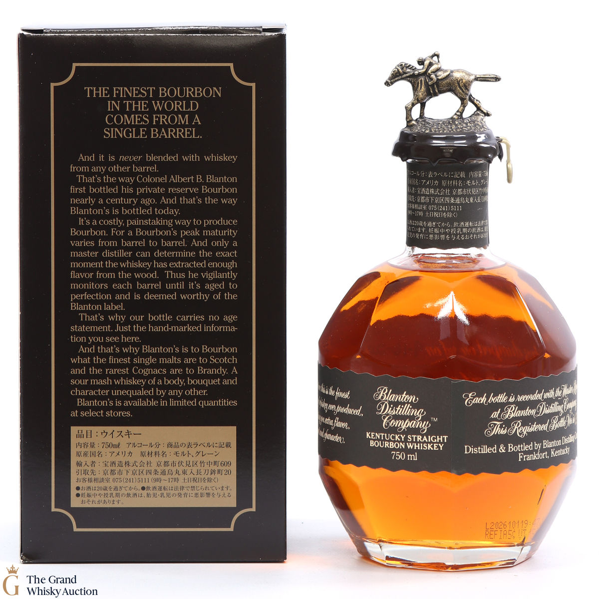 PLEASE NOTE: The wax seal on Blanton's bottles are prone to cracking in transit due to their design. Therefore, as stated in our T&C’s, we do not and will not accept liability should the seal be breached, broken, split or leak in transit. Additionally, please know due to the design of the internal cardboard packaging that surrounds the top of the bottles, it too may be torn. By bidding on this lot you have understood this to be true. Insurance is for complete breakage or loss in transit only.