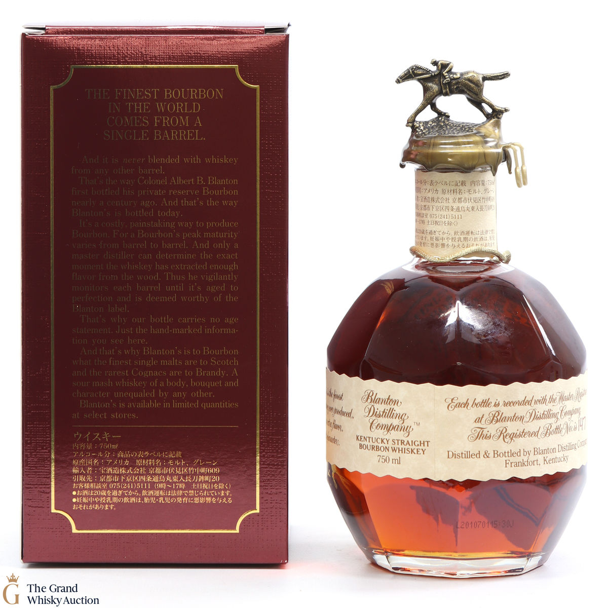 PLEASE NOTE: The wax seal on Blanton's bottles are prone to cracking in transit due to their design. Therefore, as stated in our T&C’s, we do not and will not accept liability should the seal be breached, broken, split or leak in transit. Additionally, please know due to the design of the internal cardboard packaging that surrounds the top of the bottles, it too may be torn. By bidding on this lot you have understood this to be true. Insurance is for complete breakage or loss in transit only.