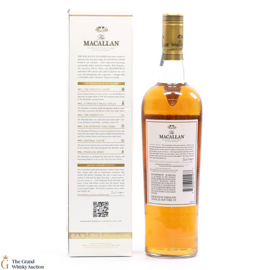 Macallan Gold was released in late 2012 as part of a series of colour-themed bottlings introduced to replace the distillery's age-statement expressions. Produced from 9-15yo first fill and refill sherry casks, it was designed to sit between the now-defunct 10yo Sherry Oak and 10yo Fine Oak bottlings.