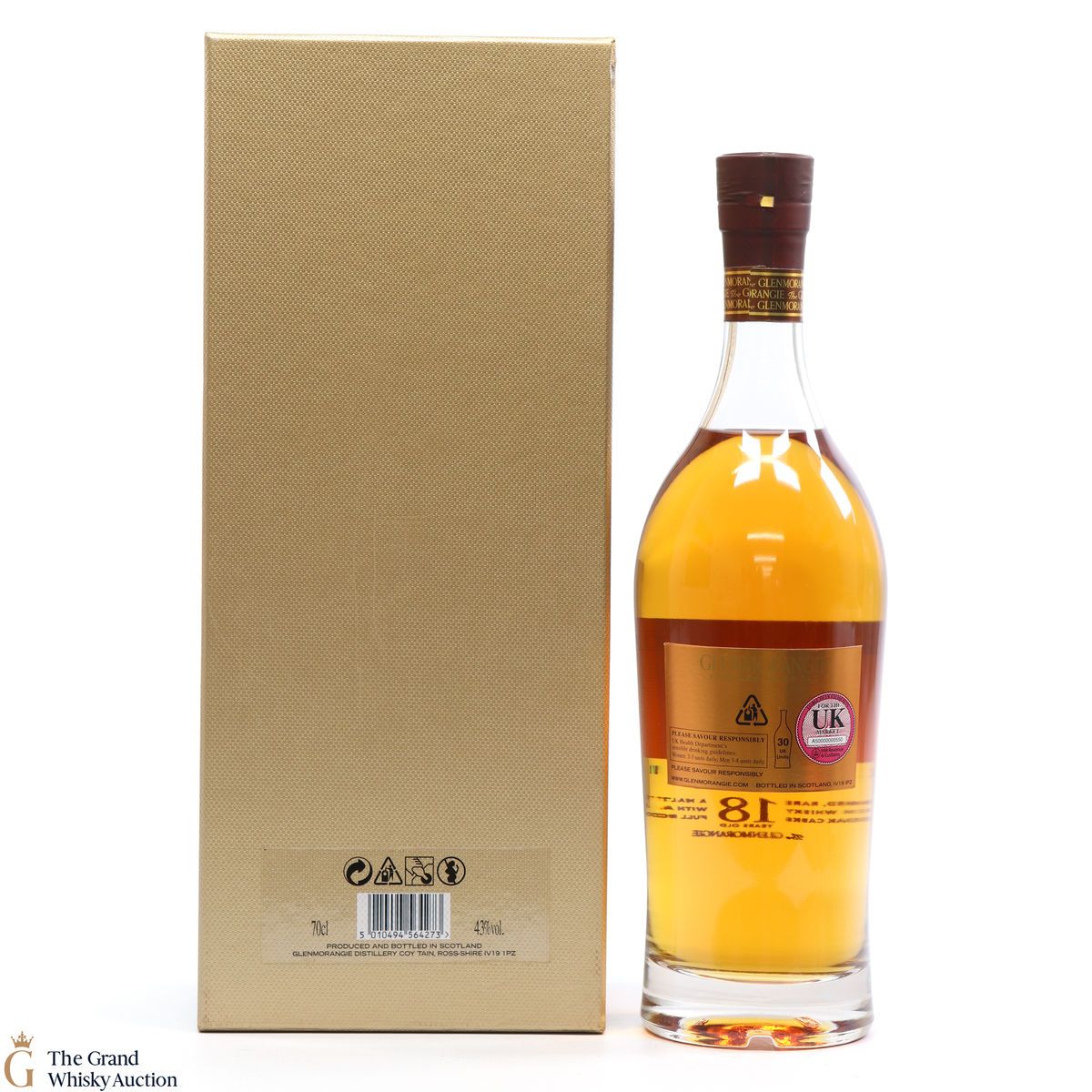 This bottle is an 18-year-old Extremely Rare, Highland single malt produced by Glenmorangie. It has been perfected by the sixteen men of Tain who have specially aged this bottle for 18 years in superior oak casks.