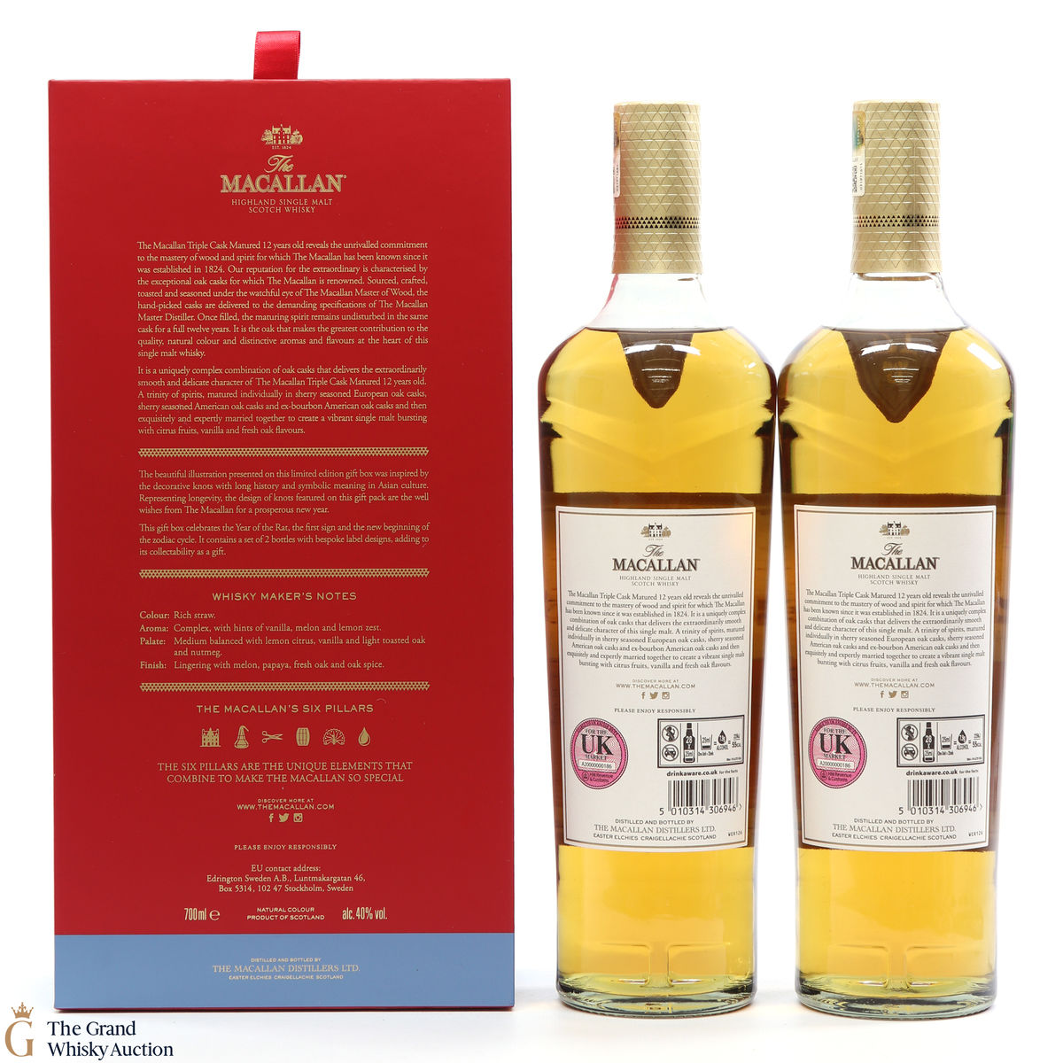 With bespoke label designs, this is an eye-catching limited-edition release twin pack containing 2 x 70cl bottles of The Macallan 12-year-old Double Cask single malt whisky.