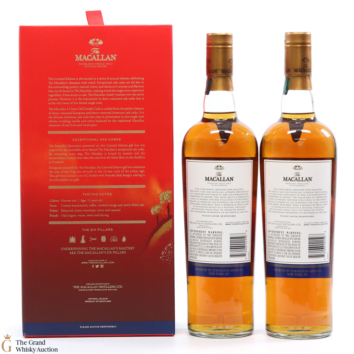 With bespoke label designs, this is an eye-catching limited-edition release twin pack containing 2 x 70cl bottles of The Macallan 12-year-old Double Cask single malt whisky.