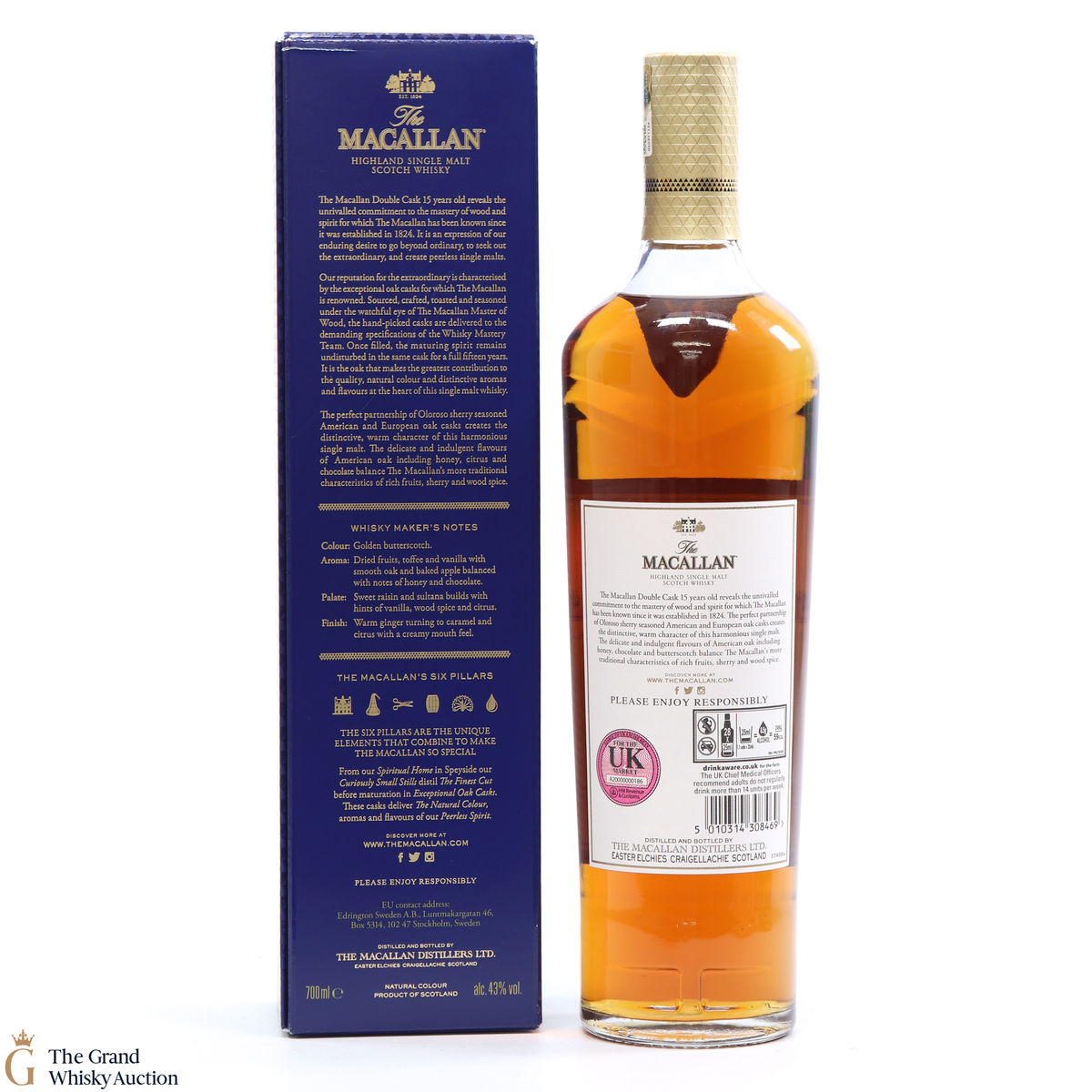 This 15 Year Old Macallan was matured in a combination of American and European Sherry oak for a minimum of 15 years. It is part of the Macallan Double Cask range, which marries the classic Macallan style and the sweetness of American oak.
