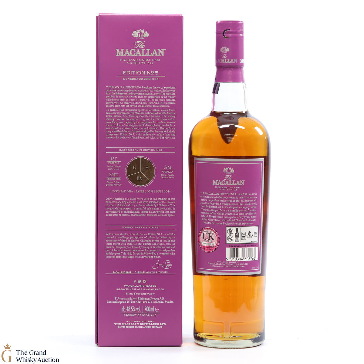 The fifth release in the Edition Series from The Macallan, The Macallan Edition No. 5 celebrates The Macallan’s extensive natural colour spectrum and the intricate whisky-making process, in partnership with masters at the Pantone Color Institute™ to create a unique shade of purple that features on the packaging.