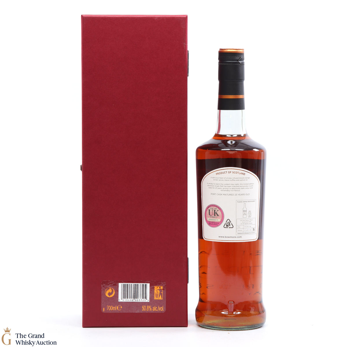 A 1989 vintage Bowmore aged in port casks for 23 years and bottled in 2013 at 50.8%. 1989 was the year that Suntory first bought a stake in Morrison Bowmore distillers. This limited release comes in an eye-catching coloured box and comes with a certificate of authenticity.
