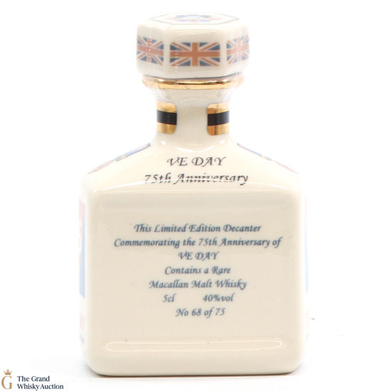 A mini decanter commemorating the 75 th anniversary of VE DAY. Filled with Macallan, this is one of 75 bottles released.