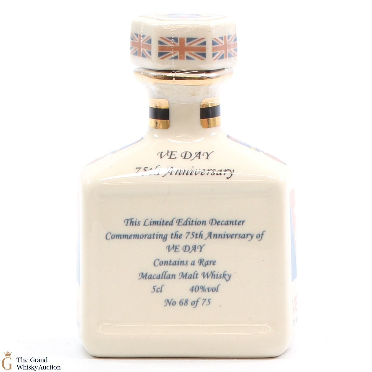A mini decanter commemorating the 75 th anniversary of VE DAY. Filled with Macallan, this is one of 75 bottles released.