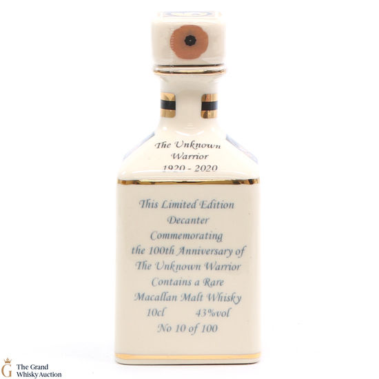 A mini decanter commemorating the 100th Anniversary of The Unknown Warrior. Filled with a rare Macallan, this is one of 100 bottles released.