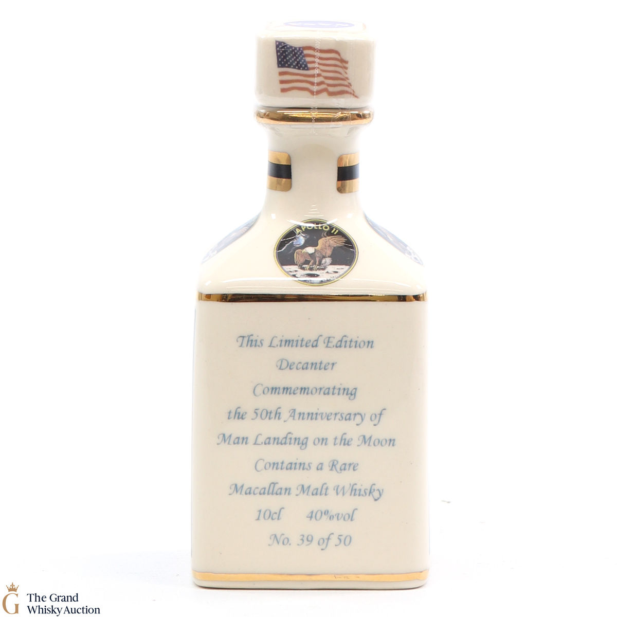 A mini decanter commemorating the 50th Anniversary of Man Landing on the Moon. Filled with a rare Macallan, this is one of 50 bottles released.