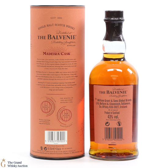 This release is from the Speyside distillery, Balvenie. The initial cask maturation took place in American Oak barrels before being finished in Madeira casks for several months.