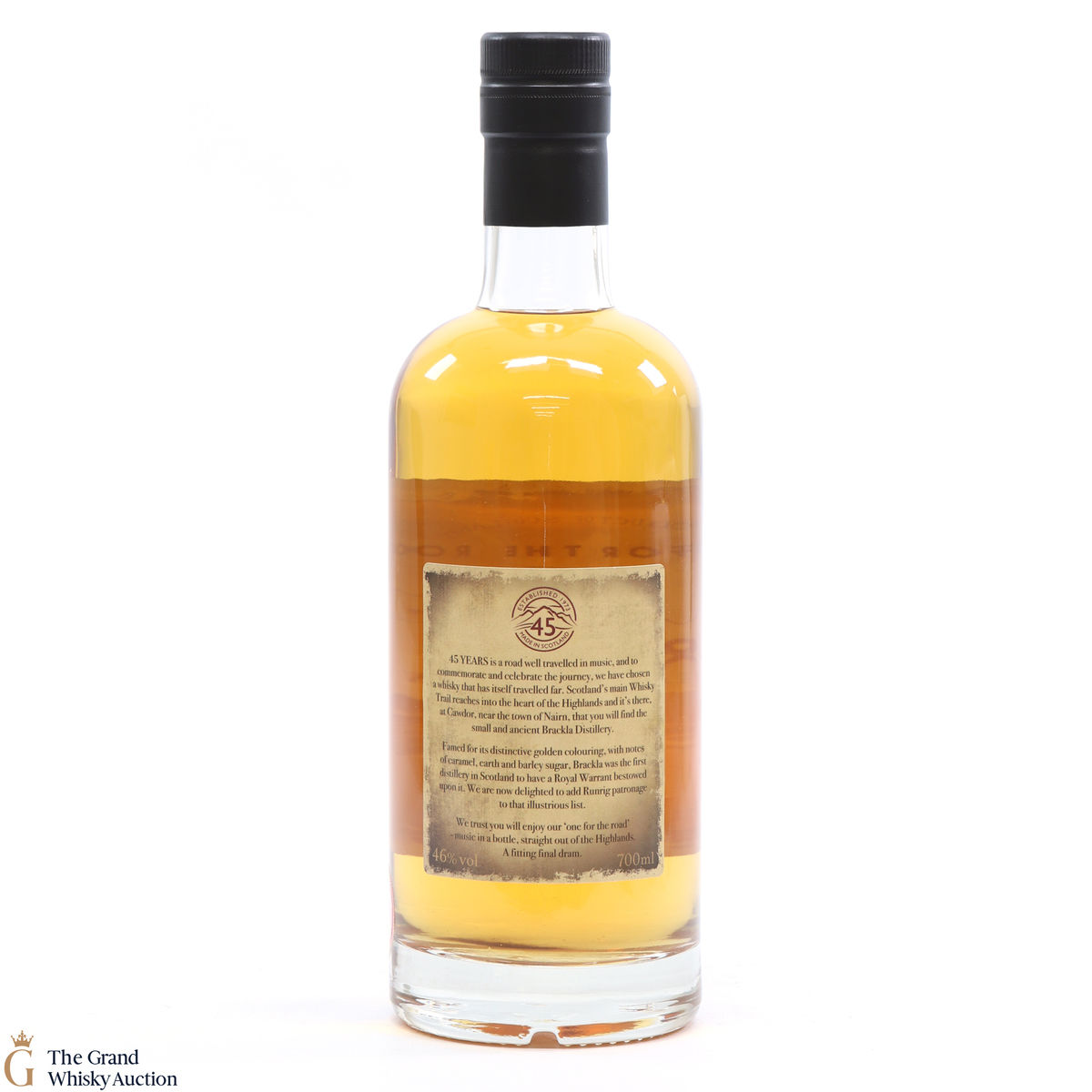 Distilled at the Royal Brackla Distillery, this single malt was bottled to celebrate 45 years of Runrig. The 'One for the Road' is a fitting final dram for the famous band.