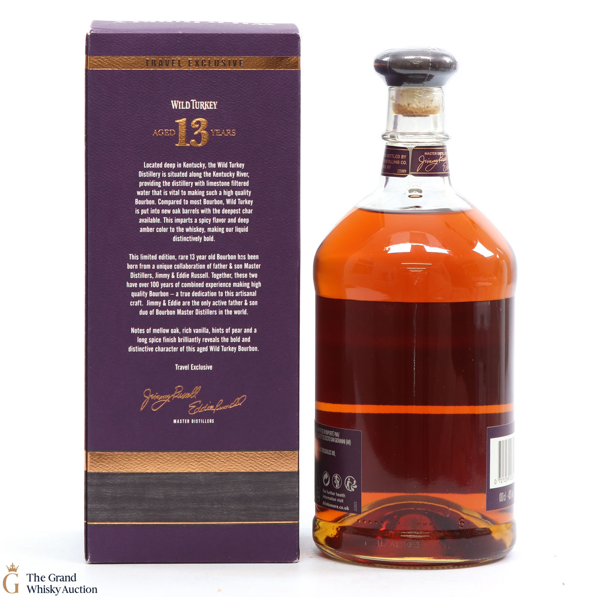 Distilled at the Wild Turkey Distillery in Kentucky USA by Father and Son Master Distillers Jimmy and Eddie Russel, this bourbon whiskey was produced as a travel retail exclusive.