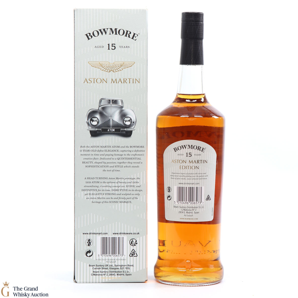 Distilled at the Bowmore Distillery in Islay, this 15 year old single malt was married in first fill bourbon casks. This is the first edition bottling to celebrate the collaboration with Aston Martin, named Dark and Intense it is available exclusively to global travellers. Each of the three editions of the Aston Martin Series features a different car, the 15 has the ATOM.