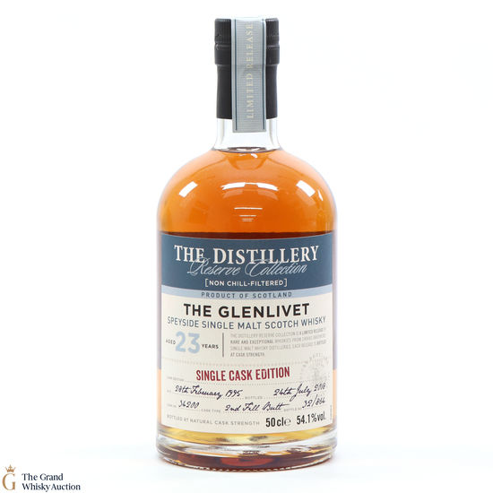 This 1995 vintage 23-year-old Glenlivet was bottled by Chivas for their Distillery Reserve Collection. This Single Cask Edition was distilled on 28th February 1995 and bottled on 24th July 2018 from 2nd fill butt #34200.