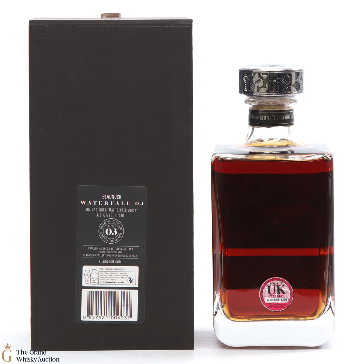 Due to the various ages of bottles and their seals, the condition of liquid is at the buyer's discretion and no claim can be lodged against failure/leakage in transit. Loss and breakage cover is available at 3% of the hammer price as standard. If the lot is not insured, no claim can be lodged against the courier or The Grand Whisky Auction for breakage or loss in transit.