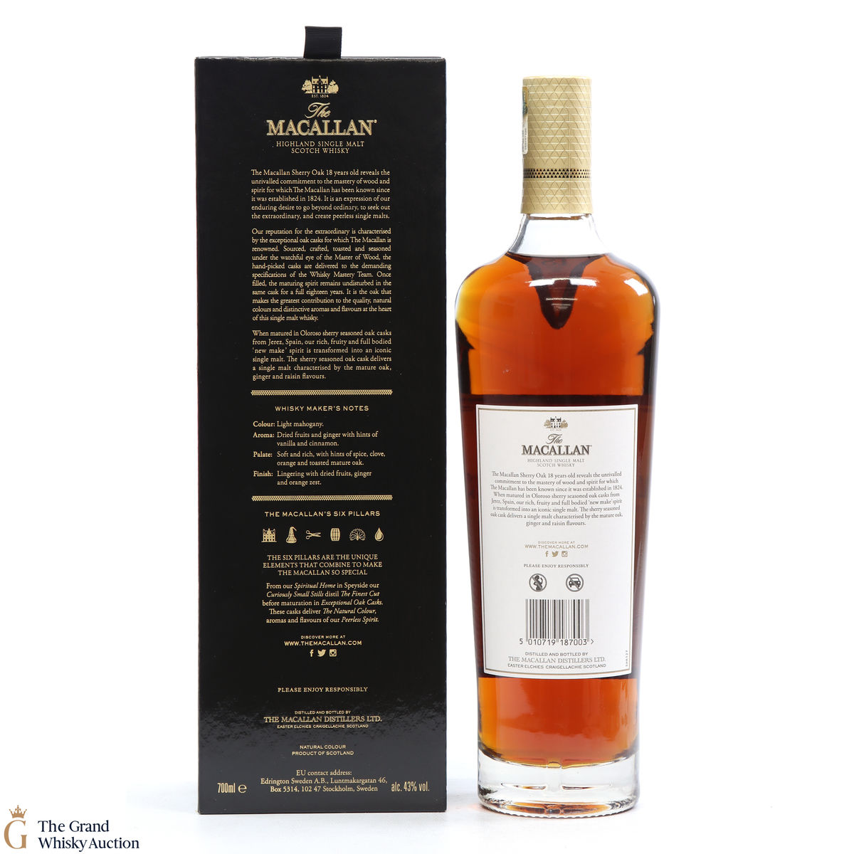 This annual release of The Macallan's popular 18 Year Old Sherry Oak is matured exclusively in sherry seasoned casks, built from both Spanish and American oak, providing a beautifully dark flavour with rich aromas.