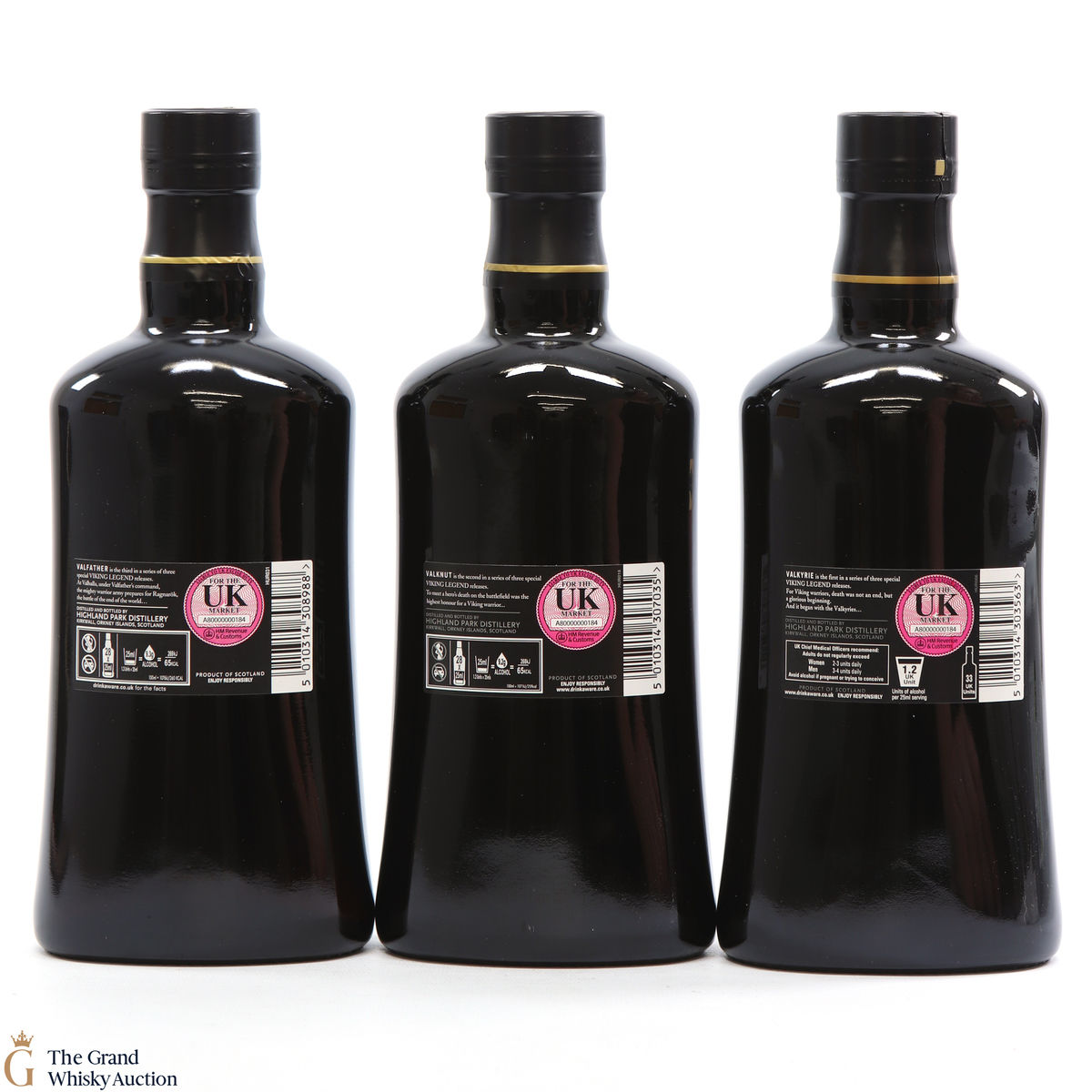 - Valkyrie is the first of Highland Park’s new Viking Legend series. Matured in a combination of first-fill American oak sherry, Bourbon and Spanish oak sherry casks and some refill casks. The packaging design was created by Danish designer Jim Lyngvild with inspiration drawn from the ancient Hammer Stone of Gotland and a Viking pendant from Upland, Sweden. 45.9% ABV and 70cl.