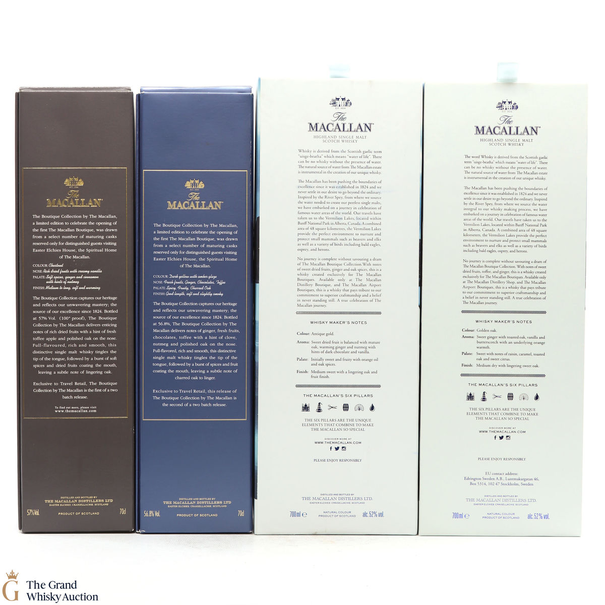 This lot includes 4 x 70cl bottles of Macallan Boutique collection -